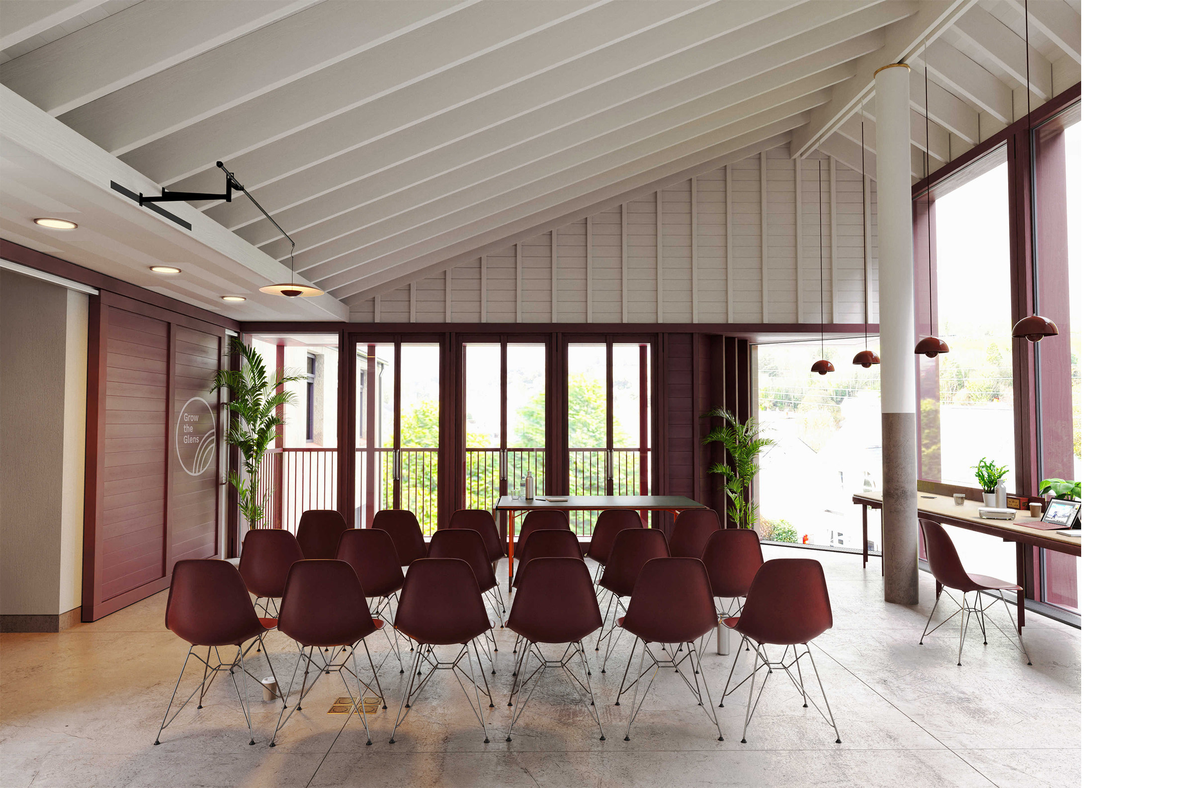 Community functions are accommodated within the extension to the front, opening out onto a community garden that encourages connections to the village and routes through. Passing outside can be part of the experience of using the building.