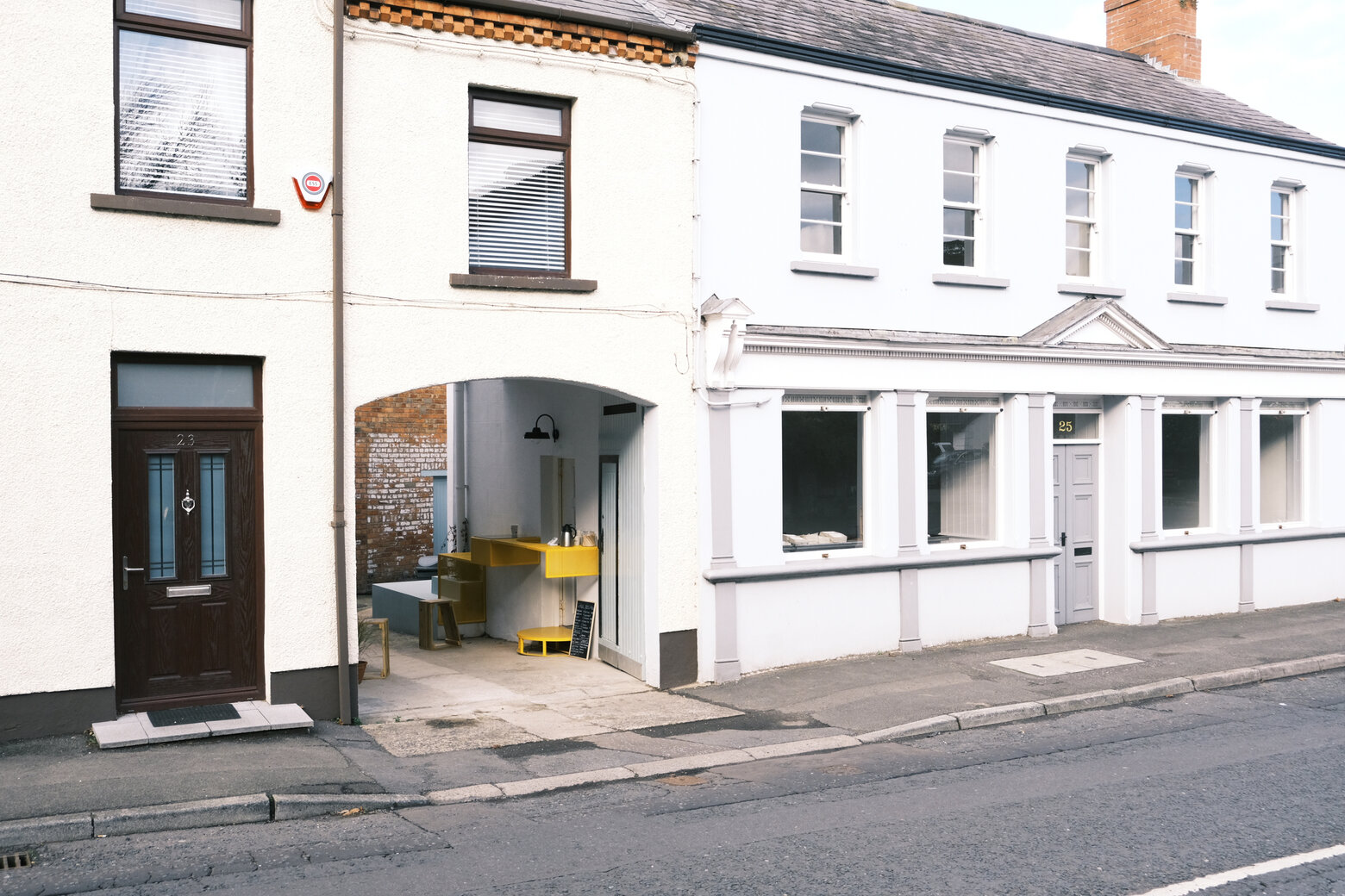 We’re excited to work with Nongraphic on their Twenty Five project in developing a strategy for the former listed building and outbuildings at 25 Lambeg Rd, Lambeg, in becoming a series of spaces to serve the local community. The first phase involves a coffee stop within the archway, Suntrap Café, a temporary installation meditating between build edges to bring life back into the laneway.