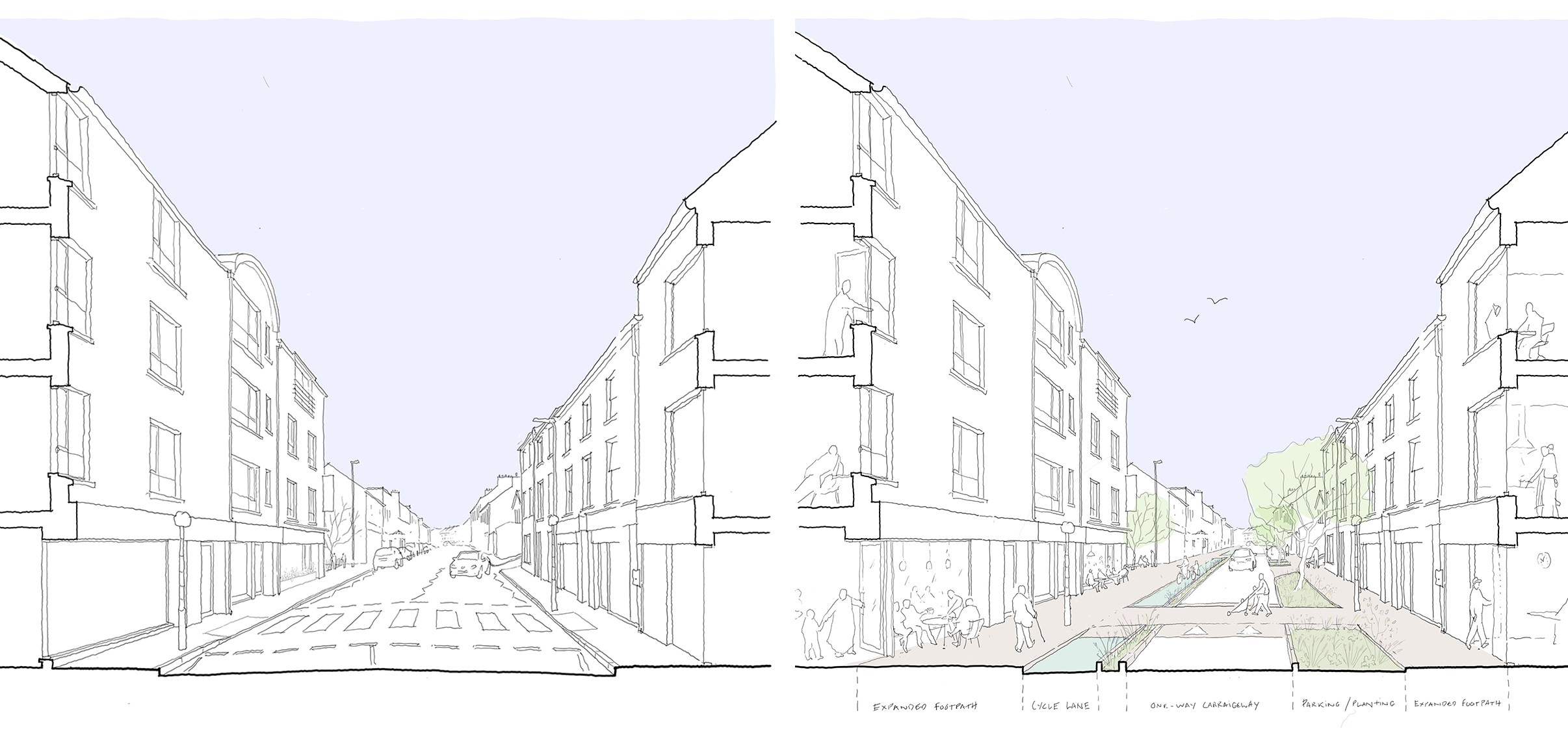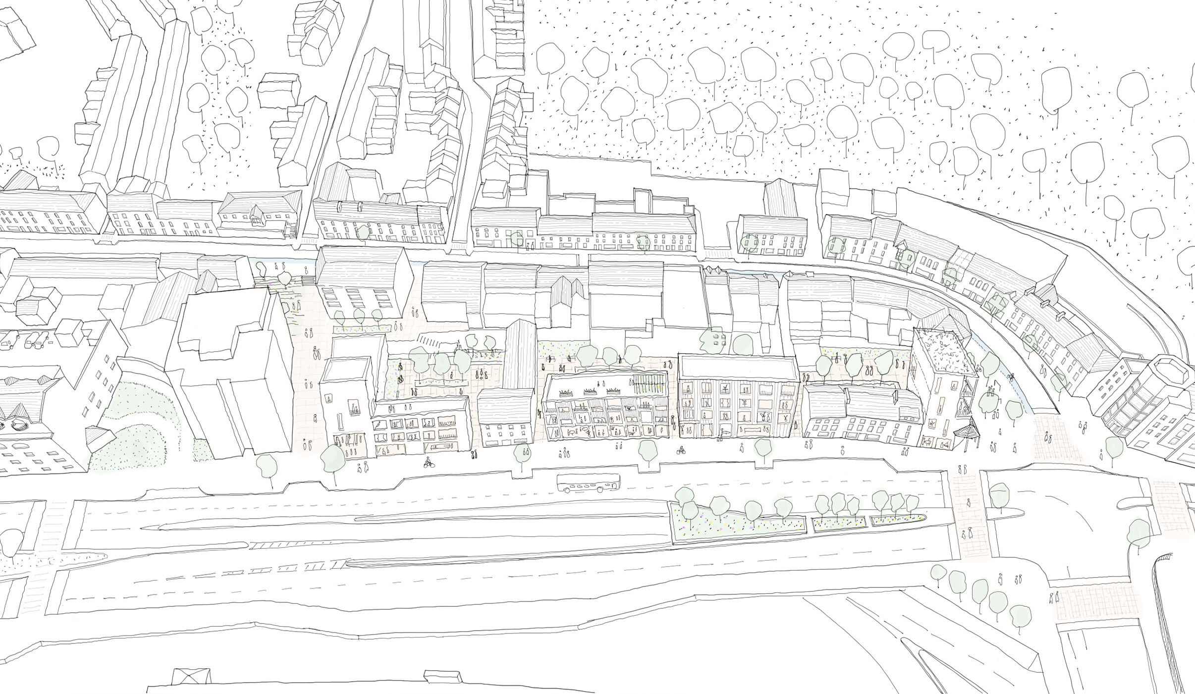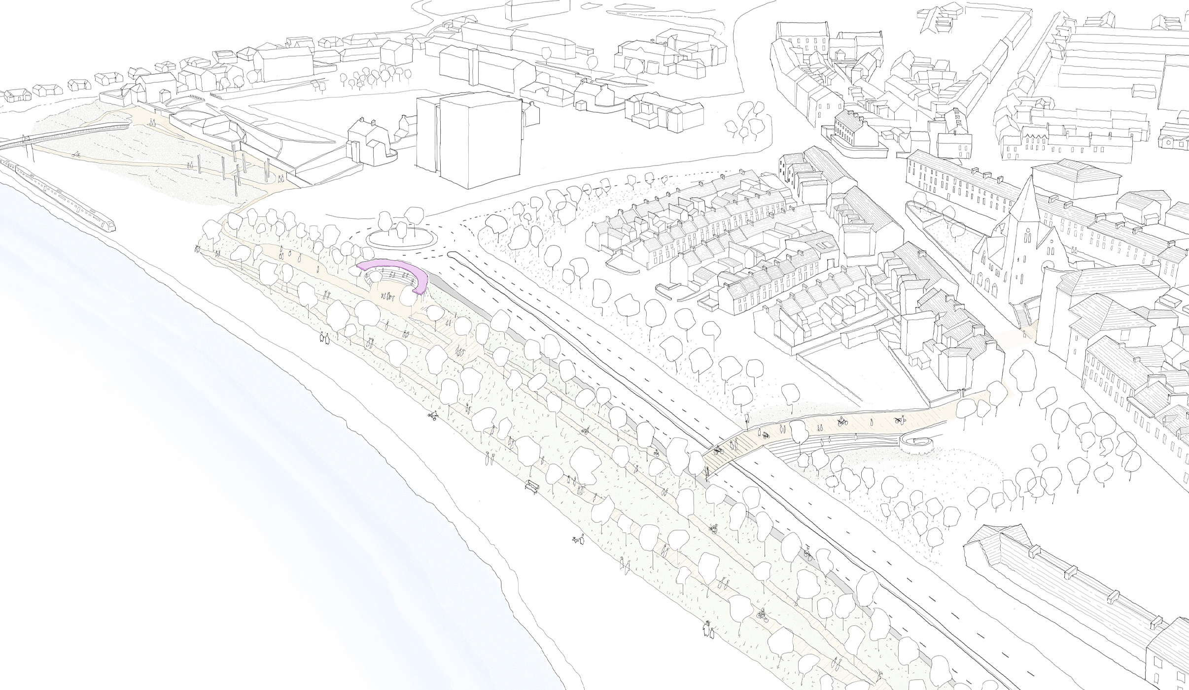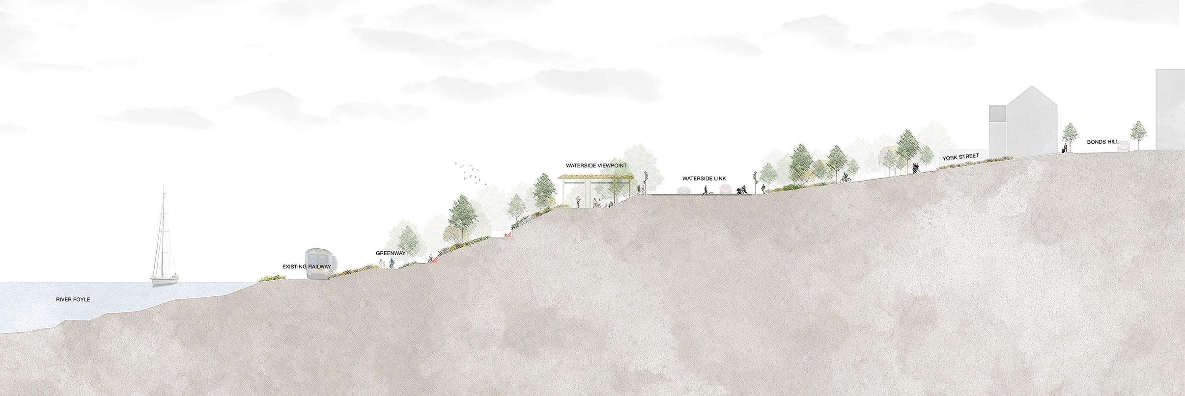 Working alongside OGU Architects and commissioned Derry City & Strabane District Council, Inner Waterside: Towards a Reconnected City is a public realm concept plan for Derry–Londonderry focusing on part of the city east of the Foyle river. Eight strategic urban proposals are explored in the document which would contribute to an improved public realm, a better connected neighbourhood and a more sustainable local high street.